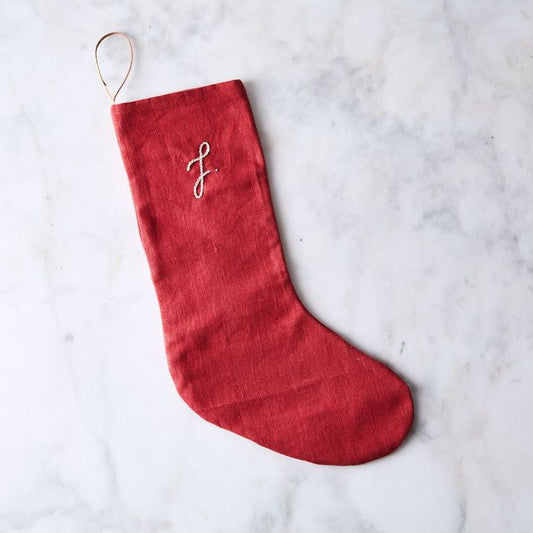 Monogrammed Linen Stockings - English Rose, Nude, Gray