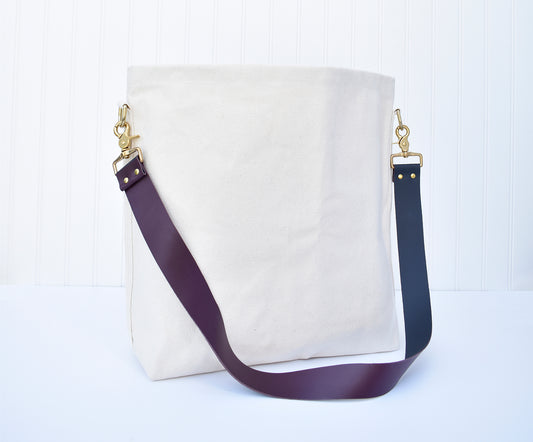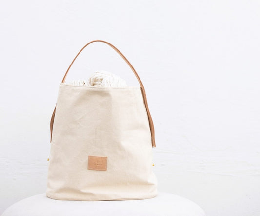 Tote Bag Ivory- Leather Strap Rose/Caramel