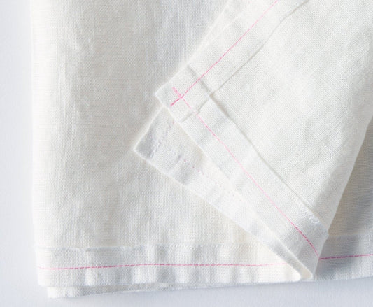 Delicious Off-white Linen Napkin- Pink stitching - Set of 2