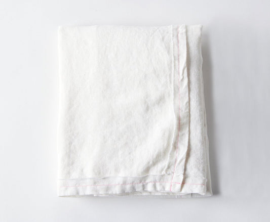 Delicious Off-White Linen Tablecloth- Pink stitching