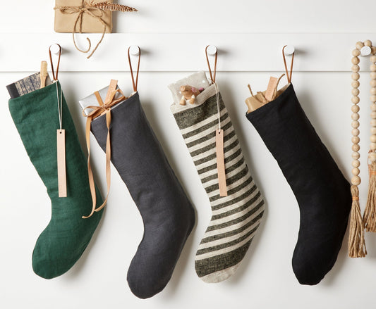 Personalized Linen Stocking with Leather Tag