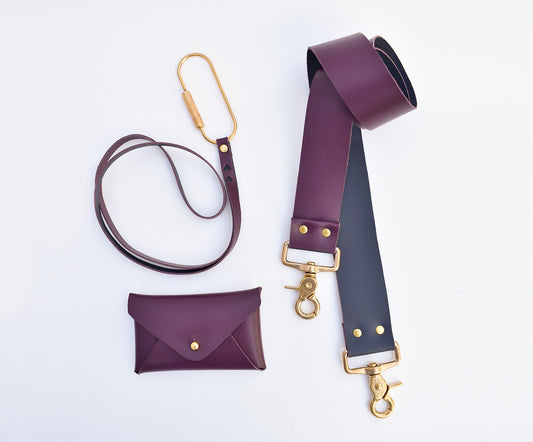 Leather Card Holder- Cherry & Navy Inside