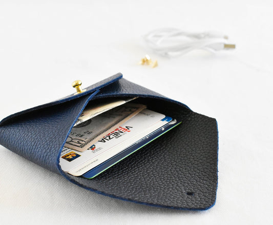 Leather Card Holder- Navy & Black Inside