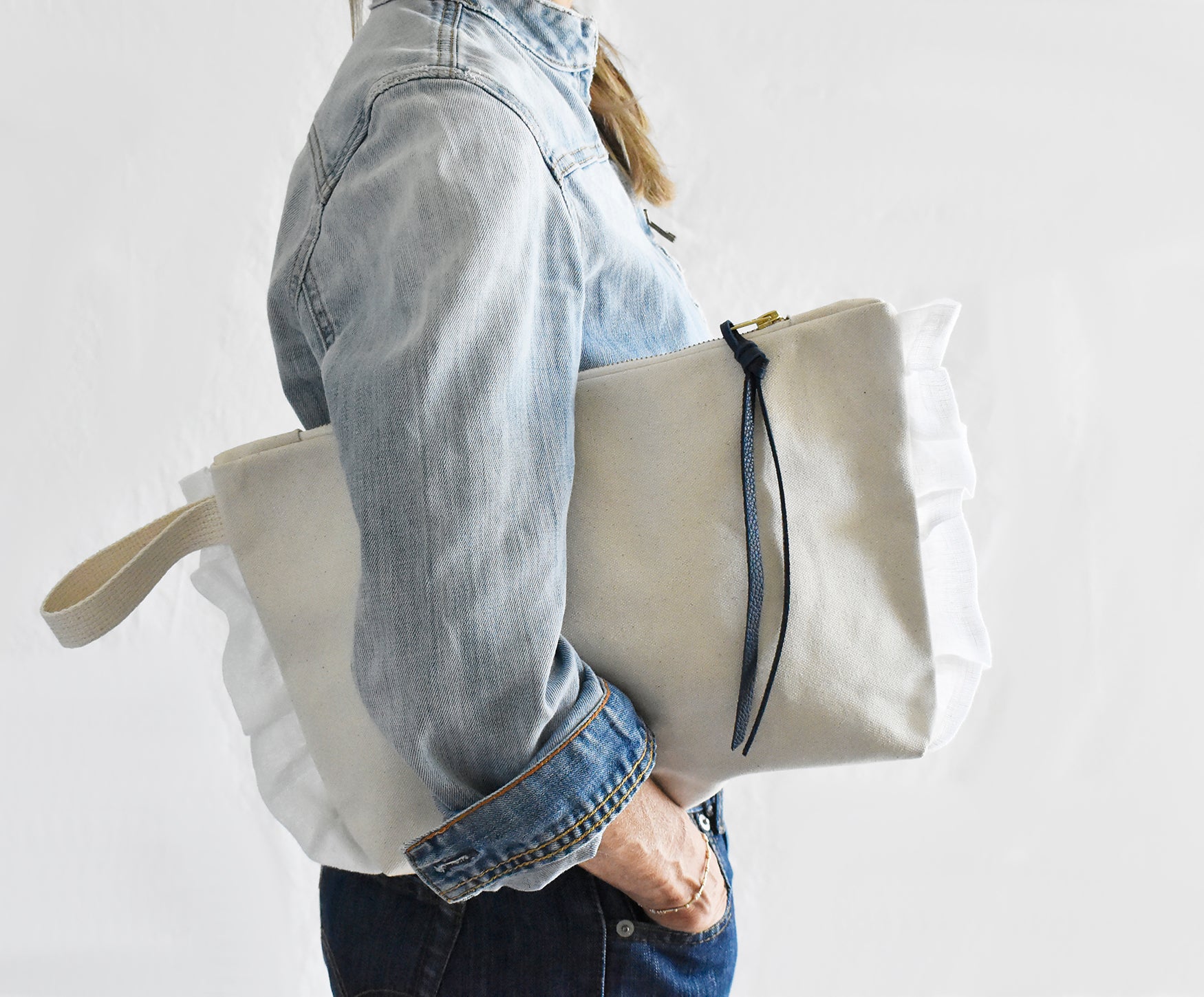 Get ready to fall in love with our charming pouches, designed for laid-back vibes and carefree adventures! Available in two sizes, these pouches are like the dynamic duo of your accessory collection, perfect for adding a touch of whimsy to your everyday life. Crafted from sturdy cotton and featuring cute linen ruffles along with a simple leather strap, they're all about easy-breezy style that's as effortless as it is adorable.
