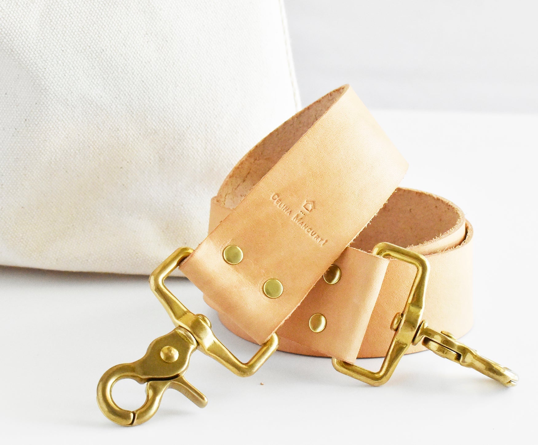 Elevate your tote bag style with our Double-Sided Leather Strap, a versatile accessory designed for both function and fashion. Handmade in our Tampa, FL studio, this premium leather strap features durable brass swivel snaps for easy attachment.
