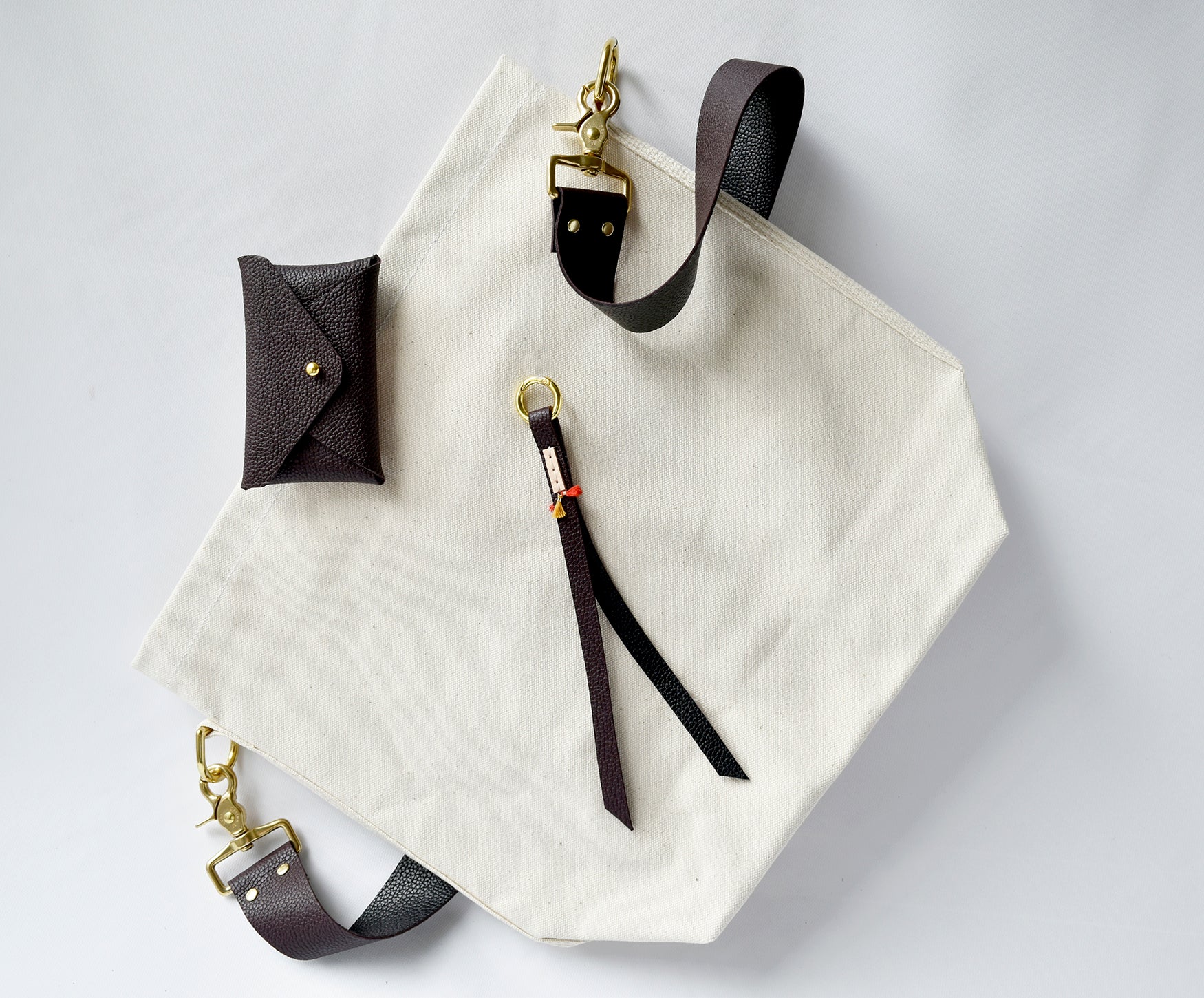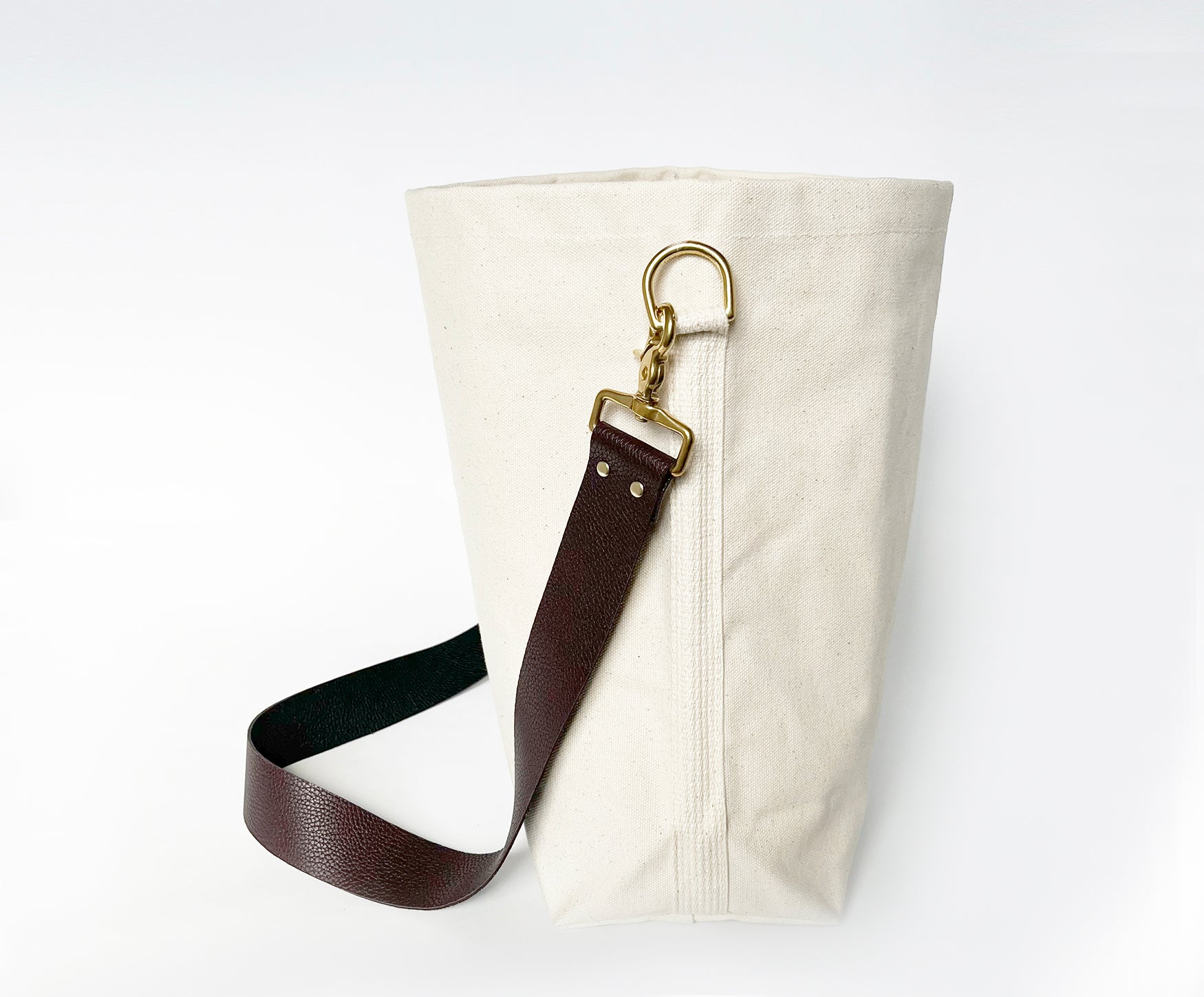 Made from our signature durable cotton canvas, both sizes are lightweight, machine washable, and built to last. Each tote features a premium leather strap (choose Crossbody or Shoulder) and solid brass hardware for strength and elegance.