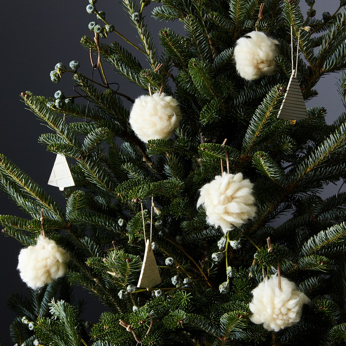 Made from soft virgin wool and finished with a tiny leather loop, these pom-poms are perfect for Christmas trees, gift wrapping, or festive accents.
