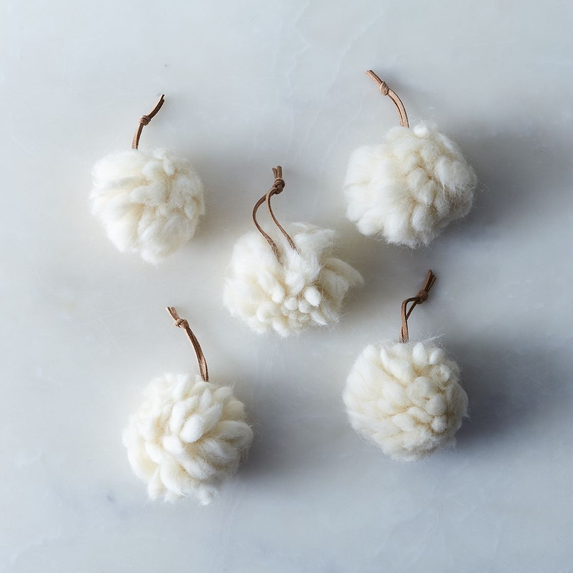 Add a cozy, handcrafted touch to your holiday décor with this set of 5 wool pom-poms.